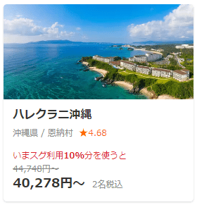 ハレクラニ沖縄公式の宿泊料金よりも安くなるので、予約前に確認必須。