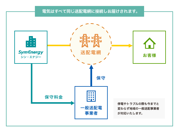電気を運ぶ施設(送配電網)についても、今までの設備をそのまま使います。