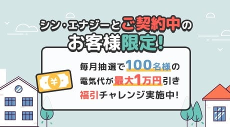 毎月抽選で100名の電気代が最大1万円引きになる「福引チャレンジ」が開催中です。