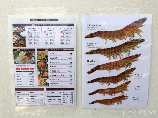 球屋の活き車えび料理はえびのサイズが選べる!約19cmのメガゴジラなど